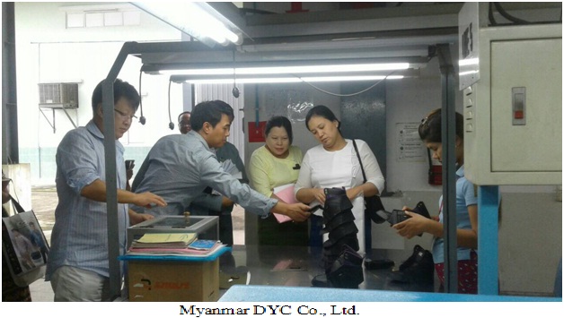 မြန်မာနိုင်ငံရင်းနှီးမြှုပ်နှံမှုကော်မရှင် ၏ ခွင့်ပြုမိန့်အမှတ် (၄၈၃/၂၀၁၂)၊ CMP စနစ်ဖြင့် ဆံပင်အတုနှင့် ဆက်စပ်ပစ္စည်းများ ထုတ်လုပ်ရောင်းချခြင်းလုပ်ငန်း ဆောင်ရွက်လျက်ရှိသည့် ရန်ကုန်တိုင်းဒေသကြီး၊ မင်္ဂလာဒုံ မြို့နယ်၊ မင်္ဂလာဒုံစက်မှုဇုန်၊ မြေကွက်အမှတ် အေ- ၁၂ ရှိ Mac Do Co., Ltd. နှင့် ခွင့်ပြုမိန့်အမှတ် (၄၅၈/၂၀၁၁) CMP စနစ်ဖြင့် ရှူးဖိနပ် နှင့် ဖိနပ် အစိတ်အပိုင်းများထုတ်လုပ်ခြင်းလုပ်ငန်း ဆောင်ရွက်လျက်ရှိသည့် ရန်ကုန်တိုင်းဒေသကြီး၊ မင်္ဂလာဒုံမြို့နယ်၊ မင်္ဂလာဒုံစက်မှုဇုန်၊ အကွက်အမှတ် စီ – ၅ နှင့် စီ – ၆ ရှိ Myanmar DYC Co., Ltd. သို့ ရင်းနှီးမြှုပ်နှံမှုနှင့် ကုမ္ပဏီများညွှန်ကြားမှုဦးစီးဌာန၊ပတ်ဝန်းကျင်ထိန်း သိမ်းရေးဦးစီးဌာန၊စက်မှုကြီးကြပ်ရေး နှင့် စစ်ဆေးရေးဦးစီးဌာန နှင့် အလုပ်သမားညွှန်ကြားမှု ဦးစီးဌာန တို့မှ တာဝန်ရှိပုဂ္ဂိုလ်များ ပါဝင်သည့် ကွင်းဆင်းစစ်ဆေးရေးအဖွဲ့သည် ကုမ္ပဏီ၏ သုံးလပတ်အစီရင်ခံစာ၊ စက်ပစ္စည်း တပ်ဆင်ထားမှု အခြေအနေ၊ အလုပ်သမား ခန့်ထားမှု၊ ပတ်ဝန်းကျင် စီမံခန့်ခွဲမှုအစီအစဉ်၊ ပုဂ္ဂလိက စက်မှုမှတ်ပုံတင်အခြေအနေ၊ ရင်းနှီးမြှုပ်နှံမှု ထည့်ဝင်မှုအခြေ အနေ စသည်များကို ၂၀၁၇ ခုနှစ် သြဂုတ်လ ၈ ရက်နေ့တွင် သွားရောက် စစ်ဆေးပြီး လိုအပ်သည်များကို ပေါင်းစပ် ညှိနှိုင်း ဆောင်ရွက်ပေးခဲ့ ပါသည်။