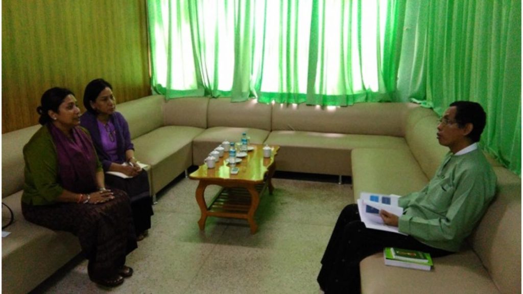 စင်ကာပူနိုင်ငံ Ayuroma International Pte Ltd မှ Managing Director ဖြစ်သူ Ms Cherry Trivedi ဦးဆောင်သော ကိုယ်စားလှယ်အဖွဲ့သည် ဦးဆန်းမြင့် ၊ ဒုတိယညွှန်ကြားရေးမှူးချုပ် ၊ ရင်းနှီးမြှုပ်နှံမှု နှင့် ကုမ္ပဏီများ ညွှန်ကြားမှု ဦးစီးဌာန နှင့် ၂-၈-၂၀၁၇ ရက်နေ့တွင် လာရောက်တွေ့ဆုံ၍ မြန်မာနိုင်ငံတွင် ရင်းနှီးမြှုပ်နှံမှု ဆိုင်ရာ ကိစ္စများနှင့် စပ်လျဉ်း၍ ဆွေးနွေးခဲ့ကြပါသည်။