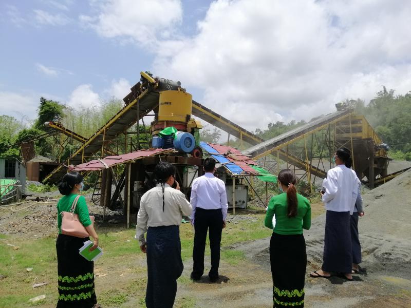 ရင်းနှီးမြှုပ်နှံမှုနှင့်ကုမ္ပဏီများညွှန်ကြားမှုဦးစီးဌာန၊ ပတ်၀န်းကျင်ထိန်းသိမ်းရေးဦးစီးဌာန၊ စက်မှုကြီးကြပ်ရေးနှင့် စစ်ဆေးရေးဦးစီးဌာနနှင့် အလုပ်သမားညွှန်ကြားရေးဦးစီးဌာနတို့မှ တာဝန်ရှိပုဂ္ဂိုလ်များပါဝင်သည့် ကချင်ပြည်နယ် ရင်းနှီးမြှုပ်နှံမှုလုပ်ငန်းများ ကြီးကြပ်ရေးအဖွဲ့သည် ကချင်ပြည်နယ် ရင်းနှီးမြှုပ်နှံမှုကော်မတီ၏ အတည်ပြုမိန့်ဖြင့် လမ်းခင်းကျောက်ဆိုဒ်စုံနှင့် မီးခံကျောက်အုတ်ခဲ ထုတ်လုပ်ခြင်းလုပ်ငန်းဆောင်ရွက်လျက်ရှိသည့် မြစ်ကြီးနားမြို့နယ်ရှိ ရွှေလမ်းအိမ်ကုမ္ပဏီလီမိတက်သို့ ၂၀၂၀ ပြည့်နှစ် ဇွန်လ ၁ ရက်နေ့တွင် ကွင်းဆင်းသွားရောက်၍ ခွင့်ပြုမိန့်ရရှိပြီးနောက်ပိုင်း လုပ်ငန်းဆောင်ရွက်မှု အခြေအနေများကို စစ်ဆေးခဲ့ပြီး လိုအပ်သည်များကို ပေါင်းစပ်ညှိနှိုင်း ဆောင်ရွက်ပေးခဲ့ပါသည်။