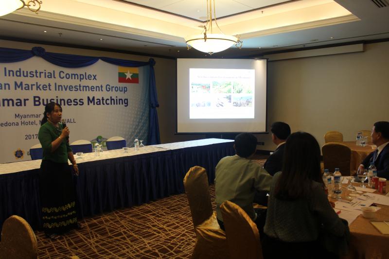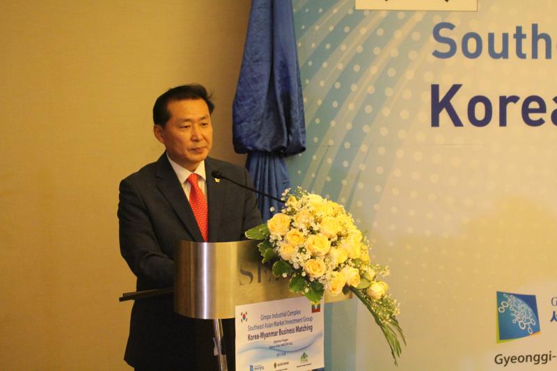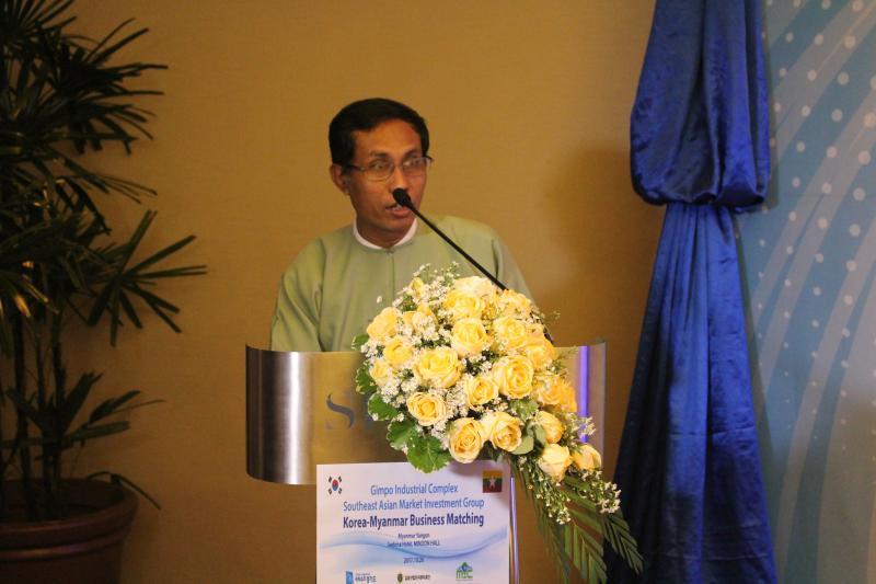 မြန်မာနိုင်ငံ ရင်းနှီးမြှုပ်နှံမှုကော်မရှင်နှင့် ပူးပေါင်း၍ Korea-Myanmar Gimpo Valley Industrial Complex Southeast Asian Market Investment Group Dispatch Plan အရ Korea Myanmar Business Conference and Business Matching အခမ်းအနားကို ၂၀၁၇ ခုနှစ် အောက်တိုဘာလ ၂၆ ရက်နေ့တွင် ရန်ကုန်မြို့ Sedona Hotel တွင် ကျင်းပပြုလုပ်ခဲ့ပြီး ရင်းနှီးမြှုပ်နှံမှုနှင့် ကုမ္ပဏီများညွှန်ကြားမှု ဦးစီးဌာန ဒုတိယ ညွှန်ကြားရေးမှူးချုပ် ဦးဆန်းမြင့်မှ အဖွင့်အမှာစကား ပြောကြားခဲ့ပါသည်။