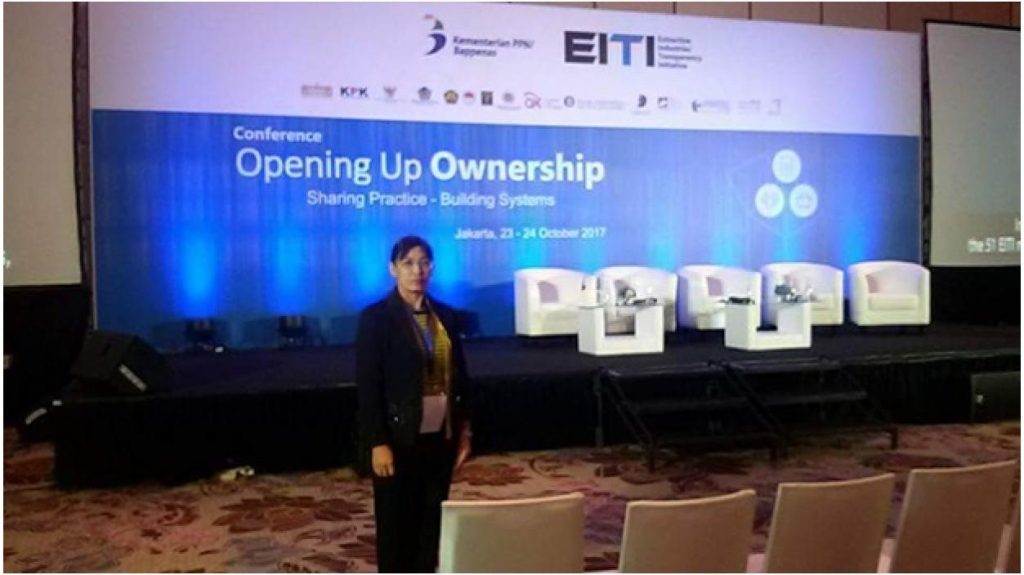 Extractive Industries Transparency Initiative (EITI) ၏ အကူအညီဖြင့် အင်ဒို နီးရှားနိုင်ငံ၊ ဂျကာတာမြို့တွင် ၂၀၁၇ ခုနှစ် အောက်တိုဘာလ ၂၃ ရက်နေ့မှ ၂၄ ရက်နေ့အထိ ၂ ရက်ကြာ ကျင်းပခဲ့သည့် တွင်းထွက်သယံဇာတအရင်းအမြစ်များ တူးဖော်ထုတ်လုပ်ရေး စက်မှု လုပ်ငန်းပွင့်လင်းမြင်သာမှုဖော်ဆောင်ရေး အကျိုးစီးပွားပိုင်ဆိုင်ခွင့်ညီလာခံသို့ ရင်းနှီးမြှုပ်နှံမှု နှင့် ကုမ္ပဏီများညွှန်ကြားမှုဦးစီးဌာန ဒုတိယညွှန်ကြားရေးမှူး ဒေါ်ခင်ဥမ္မာအောင် တက်ရောက် ခဲ့ပါသည်။
