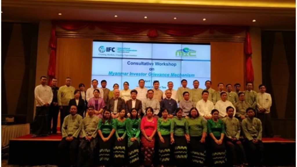 မြန်မာနိုင်ငံရင်းနှီးမြှုပ်နှံမှုကော်မရှင်နှင့် International Finance Corporation (IFC) တို့ပူးပေါင်း၍ ရင်းနှီးမြှုပ်နှံသူ၏ နစ်နာမှုဖြေရှင်းသည့် နည်းလမ်းမူဝါဒစာတမ်းနှင့် စပ်လျဉ်းသည့် ညှိနှိုင်း ဆွေးနွေးပွဲကို ၂၀၁၉ ခုနှစ် ဧပြီလ ၁ ရက်နေ့တွင် Hilton Hotel၊ နေပြည်တော်၌ ကျင်းပ ပြုလုပ် ခဲ့ပါသည်။