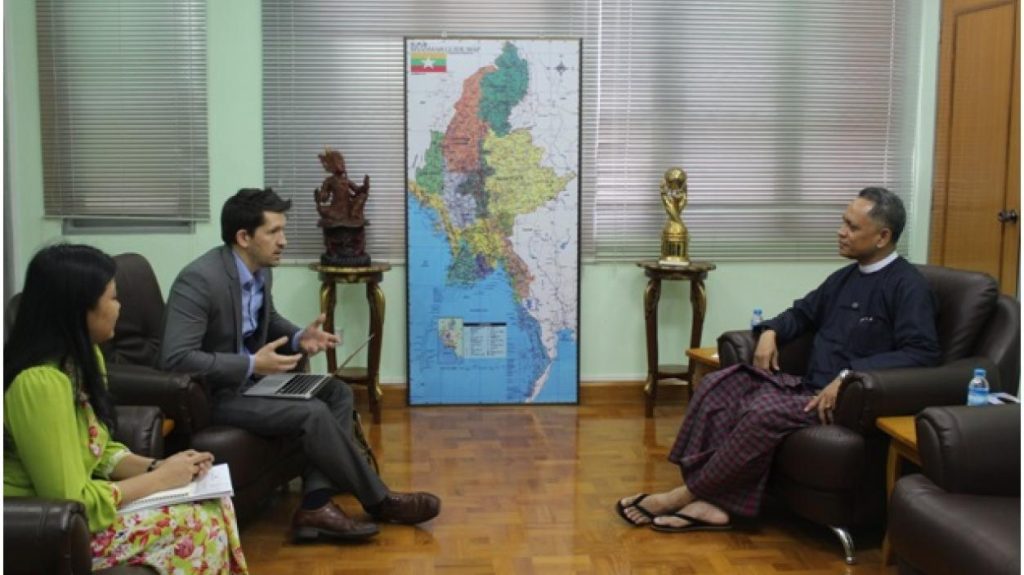 The Asia Foundation မှ Project Manager ဖြစ်သူ Mr. Jonathan Keesecker နှင့် အဖွဲ့ သည် ရင်းနှီးမြှုပ်နှံမှုနှင့် ကုမ္ပဏီများညွှန်ကြားမှုဦးစီးဌာန ညွှန်ကြားရေးမှူးချုပ် ဦးအောင်နိုင်ဦး အား ရန်ကုန်မြို့၌ ၂၀၁၇ ခုနှစ် နိုဝင်ဘာလ ၂၂ ရက်နေ့တွင် လာရောက်တွေ့ဆုံ၍ မြန်မာနိုင်ငံတွင် ဆောင်ရွက်လိုသည့် စီမံကိန်းအသစ်ဖြစ်သော Myanmar Business Environment Index (MBEI) survey ဆိုင်ရာကိစ္စရပ်များကို ဆွေးနွေးခဲ့ကြပါသည်။
