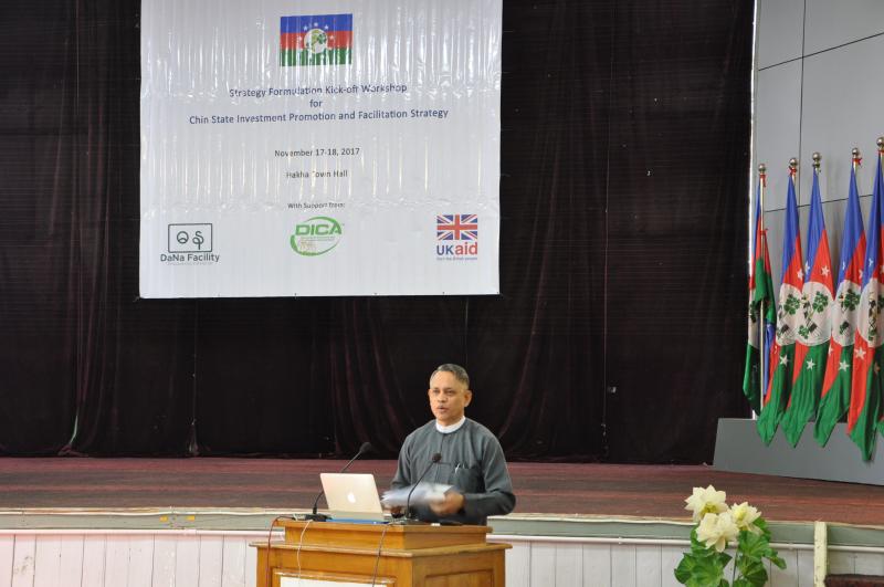 စီမံကိန်းနှင့်ဘဏ္ဍာရေးဝန်ကြီးဌာန၊ ရင်းနှီးမြှုပ်နှံမှုနှင့်ကုမ္ပဏီများညွှန်ကြားမှုဦးစီးဌာနနှင့် DaNa Facility (UK Aid) ပူးပေါင်း၍ ချင်းပြည်နယ် ရင်းနှီးမြှုပ်နှံမှုမြှင့်တင်ရေးနှင့် အဆင်ပြေ ချောမွေ့ရေး ကနဦးအလုပ်ရုံဆွေးနွေးပွဲ အခမ်းအနားအား ချင်းပြည်နယ်၊ ဟားခါးမြို့တွင် ၂၀၁၇ ခုနှစ် နိုဝင်ဘာလ ၁၇ ရက်နေ့၌ ကျင်းပ ပြုလုပ်ခဲ့ပါသည်။