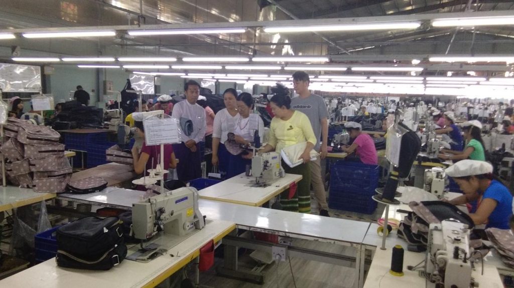မြန်မာနိုင်ငံရင်းနှီးမြှုပ်နှံမှုကော်မရှင်၏ ခွင့်ပြုမိန့်ဖြင့် CMP စနစ်ဖြင့် အိတ်အမျိုးမျိုး ချုပ်လုပ်ခြင်း လုပ်ငန်းဆောင်ရွက်လျှက်ရှိသည့် ရန်ကုန်တိုင်းဒေသကြီး၊ လှိုင်သာယာမြို့နယ်၊ ငွေပင်လယ်စက်မှု ဇုန်၊ မြေတိုင်းရပ်ကွက်အမှတ်-၂၄၊ မြေကွက်အမှတ် – ၄ ရှိ Golden Tri – Light Myanmar Co., Ltd. သို့ ရင်းနှီးမြှုပ်နှံမှုနှင့် ကုမ္ပဏီများညွှန်ကြားမှုဦးစီးဌာန၊ ပတ်ဝန်းကျင်ထိန်းသိမ်းရေးဦးစီးဌာန၊ စက်မှု ကြီးကြပ်ရေးနှင့် စစ်ဆေးရေးဦးစီးဌာနနှင့် အလုပ်သမား ညွှန်ကြားမှု ဦးစီးဌာနတို့မှ တာဝန်ရှိပုဂ္ဂိုလ် များပါဝင်သည့် ကွင်းဆင်းစစ်ဆေးရေးအဖွဲ့သည် ကုမ္ပဏီ၏ သုံးလပတ် အစီရင်ခံစာ၊ စက်ပစ္စည်း တပ်ဆင်ထားမှု အခြေအနေ၊ အလုပ်သမားခန့်ထားမှု၊ ပတ်ဝန်းကျင် စီမံခန့်ခွဲမှုအစီအစဉ်၊ ပုဂ္ဂလိက စက်မှုမှတ်ပုံတင်အခြေအနေ၊ ရင်းနှီးမြှုပ်နှံမှု ထည့်ဝင်မှု အခြေအနေ စသည်များကို ၂၀၁၈ ခုနှစ် ဧပြီလ ၉ ရက်နေ့တွင် သွားရောက် စစ်ဆေးပြီး လိုအပ်သည်များကို ပေါင်းစပ်ညှိနှိုင်းဆောင်ရွက် ပေးခဲ့ပါသည်။