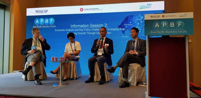စီမံကိန်း နှင့် ဘဏ္ဍာရေးဝန်ကြီးဌာန၊ ရင်းနှီးမြှုပ်နှံမှုနှင့် ကုမ္ပဏီများညွှန်ကြားမှုဦးစီးဌာနမှ ညွှန်ကြားရေးမှူးချုပ် ဦးအောင်နိုင်ဦးသည် အာရှ-ပစိဖိတ်ဆိုင်ရာစီးပွားရေးနှင့် လူမှုရေး ကော်မရှင် (ESCAP) နှင့် ဟောင်ကောင် အထူးအုပ်ချုပ်ခွင့်ရဒေသ၏ ဆန်းသစ်တီထွင်ရေးနှင့် နည်းပညာ ဗျူရိုတို့မှ ပူးပေါင်းစီစဉ်မှုဖြင့် ဟောင်ကောင်အထူးအုပ်ချုပ်ခွင့်ရဒေသ၌ ၂၀၁၈ ခုနှစ် ဧပြီလ ၁၀ ရက်နေ့မှ ၁၁ ရက်နေ့ အထိကျင်းပလျက်ရှိသည့် အာရှ-ပစိဖိတ် စီးပွားရေးဆိုင်ရာ ဆွေးနွေးပွဲသို့ တက်ရောက်လျက်ရှိပါသည်။အဆိုပါ ဆွေးနွေးပွဲ ဒုတိယနေ့တွင် ညွှန်ကြားရေးမှူးချုပ်မှ Economic Outlook and Key Policy Challenges in Emerging Asia ခေါင်းစဉ်နှင့် စပ်လျဉ်းသည့် Enhancing Growth through Digitization စကားဝိုင်းဆွေးနွေးပွဲတွင် ပါဝင်ဆွေးနွေးခဲ့ပါသည်။