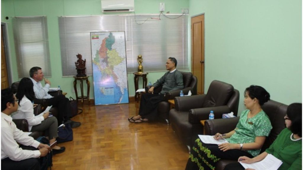 DaNa Facility Empowering Enterprise မှ Team Leader ဖြစ်သူ Mr. Peter Brimble ဦးဆောင်သော ကိုယ်စားလှယ်အဖွဲ့သည် ညွှန်ကြားရေးမှူးချုပ်၊ ရင်းနှီးမြှုပ်နှံမှုနှင့်ကုမ္ပဏီများ ညွှန်ကြားမှုဦးစီးဌာနနှင့် ( ၂၆- ၄ -၂၀၁၇) ရက်နေ့တွင် လာရောက်တွေ့ဆုံ၍ တိုင်းဒေသကြီး နှင့်ပြည်နယ် ရင်းနှီးမြှုပ်နှံမှုကော်မတီဝင်များအတွက် သင်တန်းပို့ချရေးဆိုင်ရာ ကိစ္စရပ်များအား ဆွေးနွေးခဲ့ပါသည်။