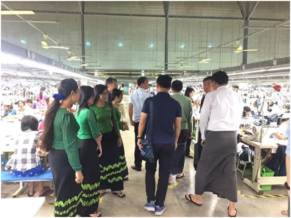 မြန်မာနိုင်ငံ ရင်းနှီးမြှုပ်နှံမှုကော်မရှင်၏ ခွင့်ပြုမိန့်ဖြင့်ဆောင်ရွက်လျက်ရှိသော ပုသိမ်မြို့နယ်၊ ဧရာဝတီတိုင်း ဒေသကြီးအတွင်းရှိ Dong Long (Pathein) Garment Co., Ltd. ၏ CMP စနစ်ဖြင့် အထည်ချုပ် လုပ်ခြင်းလုပ်ငန်းသို့ ဧရာဝတီတိုင်းဒေသကြီး ရင်းနှီးမြှုပ်နှံမှုနှင့် ကုမ္ပဏီများညွှန်ကြားမှု ဦးစီးဌာနမှ ညွှန်ကြားရေးမှူး ဦးစိုးအောင် ဦးဆောင်သော ကွင်းဆင်းစစ်ဆေးရေးအဖွဲ့သည် ၂၀၁၈ ခုနှစ်၊ အောက်တိုဘာလ ၃၁ ရက်နေ့တွင် ကုမ္ပဏီ၏ တာဝန်ရှိသူများနှင့် တွေ့ဆုံဆွေးနွေးခဲ့ပြီး လိုအပ်သည်များကို ပေါင်းစပ်ညှိနှိုင်း ဆောင်ရွက်ပေးခဲ့ပါသည်။