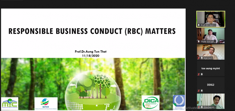 ရင်းနှီးမြှုပ်နှံမှုနှင့် ကုမ္ပဏီများညွှန်ကြားမှုဉီးစီးဌာန ဝန်ထမ်းများအသိပညာတိုးတက်စေရေး ရည်ရွယ်၍ Responsible Business Conduct-RBC ဆိုင်ရာ ဆွေးနွေးပွဲတစ်ခုကို ၂၀၂၀ ပြည့်နှစ် နိုဝင်ဘာလ ၁၈ ရက်နေ့တွင် “Virtual စနစ်” ဖြင့် ကျင်းပပြုလုပ်ခဲ့ပါသည်။