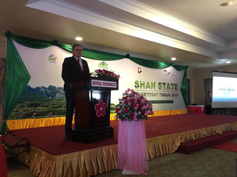 ရင်းနှီးမြှုပ်နှံမှုနှင့်နိုင်ငံခြားစီးပွားဆက်သွယ်ရေး ဝန်ကြီးဌာန၊ မြန်မာနိုင်ငံ ရင်းနှီးမြှုပ်နှံမှု ကော်မရှင်နှင့် ရှမ်းပြည်နယ် ရင်းနှီးမြှုပ်နှံမှုကော်မတီတို့မှ ပူးပေါင်း၍ Deutsche Gesellschaftfür Internationale Zusammenarbeit (GIZ) ၏ ပါဝင်ကူညီမှုဖြင့် ရှမ်းပြည်နယ် အတွင်း စိုက်ပျိုးရေးကဏ္ဍ မြှင့်တင်နိုင်ရန် ရည်ရွယ်၍ ရှမ်းပြည်နယ် ရင်းနှီးမြှုပ်နှံမှုဖိုရမ်ကို ၂၀၁၉ ခုနှစ် နိုဝင်ဘာလ ၂၆ ရက်နေ့တွင် ရှမ်းပြည်နယ် တောင်ကြီးမြို့ရှိ Royal Taunggyi Hotel ၌ ကျင်းပပြုလုပ်ခဲ့ပါသည်။