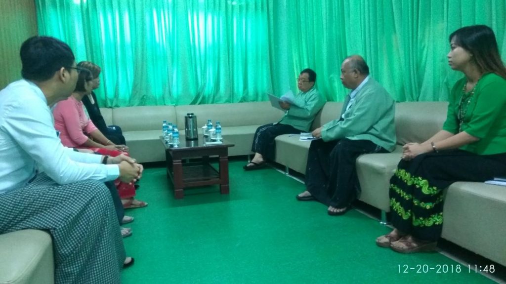 ဦးသန်းအောင်ကျော်၊ ဒုတိယညွှန်ကြားရေးမှူးချုပ်၊ ရင်းနှီးမြှုပ်နှံမှုနှင့် ကုမ္ပဏီများညွှန် ကြားမှုဦးစီး ဌာနသည် Ms. Ang Lay Hiong၊ Managing Director၊ UGS (Myanmar) Limited အား ၂၀၁၈ ခုနှစ် ဒီဇင်ဘာလ ၂၀ ရက်နေ့တွင် လက်ခံတွေ့ဆုံခဲ့ပြီး ရင်းနှီးမြှုပ်နှံမှုဆိုင်ရာ လုပ်ထုံးလုပ်နည်းများနှင့် စပ်လျဉ်း၍ ဆွေးနွေးခဲ့ပါသည်။