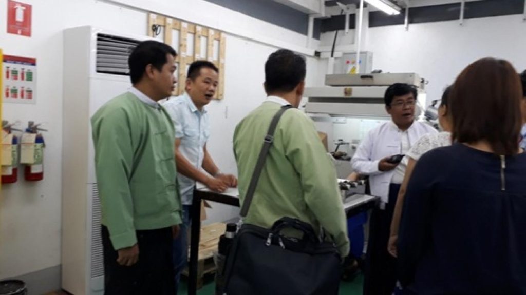 မြန်မာနိုင်ငံ ရင်းနှီးမြှုပ်နှံမှုကော်မရှင်၏ ခွင့်ပြုမိန့်ဖြင့် ဆောင်ရွက်လျက်ရှိသော ရန်ကုန် တိုင်းဒေသကြီး၊ လှိုင်သာယာမြို့နယ်၊ လှိုင်သာယာစက်မှုဇုန်ရှိ Simon Labels (SML) Myanmar Manufacturing Co., Ltd. သို့ ရင်းနှီးမြှုပ်နှံမှုနှင့် ကုမ္ပဏီများညွှန်ကြားမှုဦးစီးဌာန၊ အလုပ်သမား ညွှန်ကြားမှုဦးစီးဌာန၊ ပတ်၀န်းကျင်ထိန်းသိမ်းရေးဦးစီးဌာန နှင့် စက်မှုကြီးကြပ်ရေးနှင့် စစ်ဆေးရေး ဦးစီးဌာန တို့မှ တာဝန်ရှိပုဂ္ဂိုလ် များပါ၀င်သည့် ကွင်းဆင်းစစ်ဆေးရေး အဖွဲ့သည် ကုမ္ပဏီ၏ သုံးလပတ် အစီရင်ခံစာ၊ ထုတ်လုပ်မှုအခြေအနေ၊ စီးပွားဖြစ်စတင်ဆောင်ရွက်ပြီးအခြေအနေ၊ အလုပ် သမားခန့်ထားမှု၊ ပတ်၀န်းကျင်စီမံခန့်ခွဲမှုအစီအစဉ်၊ ပုဂ္ဂလိက စက်မှုမှတ်ပုံတင်၊ လုံခြုံမှုအထောက် အထားလက်မှတ်နှင့် မတည်ငွေ ထည့်၀င်မှုအခြေအနေ စသည် များကို ၂၀၁၇ ခုနှစ်၊ မတ်လ ၂၃ ရက် နေ့တွင် သွားရောက်စစ်ဆေးပြီး လိုအပ်သည်များကို ပေါင်းစပ်ညှိနှိုင်း ဆောင်ရွက်ပေးခဲ့ ပါသည်။