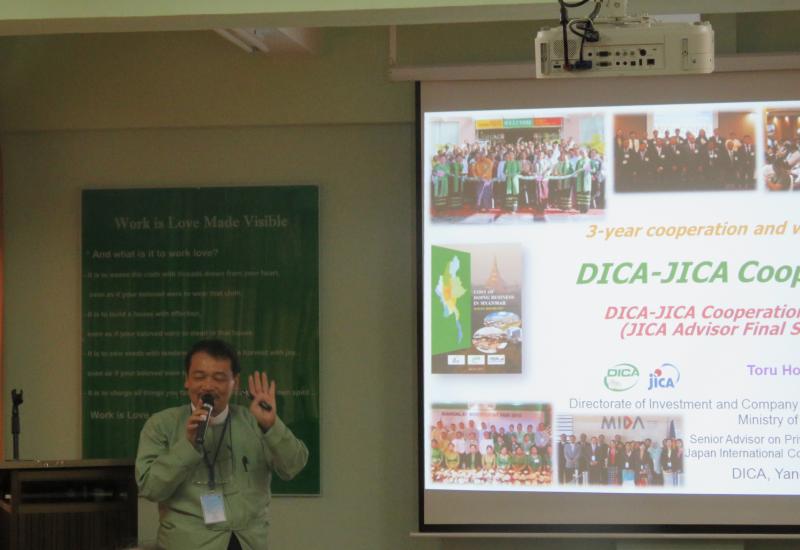 ၂၀၁၇ ခုနှစ် မတ်လ ၂၂ ရက်နေ့တွင် DICA-JICA Cooperation Seminar ကို ရင်းနှီးမြှုပ်နှံမှုနှင့် ကုမ္ပဏီများညွှန်ကြားမှုဦးစီးဌာနနှင့် ဂျပန်အပြည်ပြည်ဆိုင်ရာ ပူးပေါင်း ဆောင်ရွက်ရေးအေဂျင်စီ (JICA) တို့ ပူးပေါင်း၍ ကျင်းပပြုလုပ်ခဲ့ပါသည်။