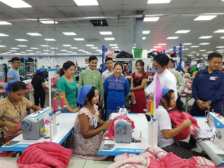ရန်ကုန်တိုင်းဒေသကြီး ရင်းနှီးမြှုပ်နှံမှုလုပ်ငန်းများ ကြီးကြပ်ရေးအဖွဲ့ ဥက္ကဋ္ဌ နော်ပန်းသဉ္ဇာမျိုးနှင့် သက်ဆိုင်ရာဌာနများမှ တာဝန်ရှိပုဂ္ဂိုလ်များ ပါဝင်သောအဖွဲ့သည် ၂၀၁၉ ခုနှစ် ဩဂုတ်လ ၉ ရက်နေ့တွင် လှိုင်သာယာမြို့နယ်အတွင်းရှိ မြန်မာနိုင်ငံ ရင်းနှီးမြှုပ်နှံမှု ကော်မရှင်၏ ခွင့်ပြုမိန့်ရယူကာ CMP စနစ်ဖြင့် သိုးမွှေးယက်ထည် အမျိုးမျိုး ချုပ်လုပ်ခြင်း လုပ်ငန်းဆောင်ရွက်လျက်ရှိသည့် Jinli Knitting & Spinning Co., Ltd နှင့် Spring River Knitting (Myanmar) Co., Ltd သို့လည်းကောင်း၊ ရန်ကုန်တိုင်းဒေသကြီး ရင်းနှီးမြှုပ်နှံမှု ကော်မတီ၏ အတည်ပြုမိန့်ရယူကာ CMP စနစ်ဖြင့် အဝတ်အထည် အမျိုးမျိုးချုပ်လုပ်ခြင်း လုပ်ငန်းဆောင်ရွက်လျက်ရှိသည့် Hengrun Garment Co., Ltd နှင့် Jiangusu Soho (Myanmar) Industry Co., Ltd. သို့ လည်းကောင်း ကွင်းဆင်းစစ်ဆေးခဲ့ပြီး လိုအပ်သည်များကို ပေါင်းစပ်ညှိနှိုင်း ဆောင်ရွက်ပေးခဲ့ပါသည်။