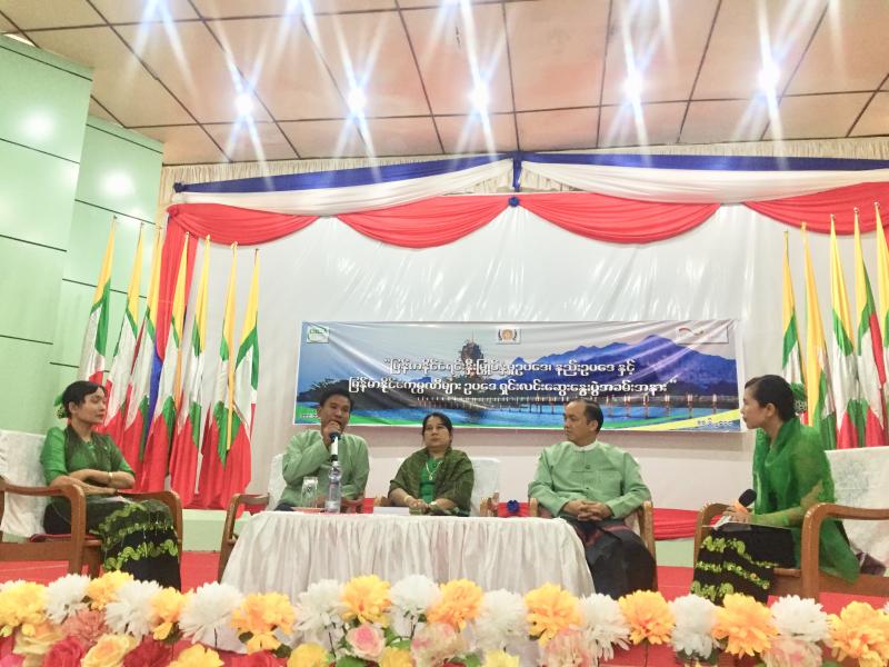 ရင်းနှီးမြှုပ်နှံမှုနှင့် ကုမ္ပဏီများညွှန်ကြားမှု ဦးစီးဌာနမှ ဦးဆောင်၍ ဂျာမနီ အပြည်ပြည်ဆိုင်ရာ ပူးပေါင်း ဆောင်ရွက်ရေးအဖွဲ့ (GIZ) ပံ့ပိုးကူညီမှုဖြင့် မြန်မာနိုင်ငံ ရင်းနှီးမြှုပ်နှံမှု ဥပဒေ၊ နည်းဥပဒေများ၊ မြန်မာ နိုင်ငံ ကုမ္ပဏီများ ဥပဒေ နှင့် စပ်လျဉ်းသည့် ရှင်းလင်းဆွေးနွေးပွဲ အခမ်းအနား ကို ၂၀၁၈ ခုနှစ် ဇွန်လ ၁၁ ရက်နေ့တွင် ကရင်ပြည်နယ်၊ ဘားအံမြို့၊ ဇွဲကပင်ခန်းမ၌ ကျင်းပပြုလုပ်ခဲ့ရာ ကရင်ပြည်နယ် စီမံကိန်း၊ ဘဏ္ဍာရေးနှင့် စည်ပင်သာယာရေးဝန်ကြီး ဦးသန်းနိုင်နှင့် ရင်းနှီးမြှုပ်နှံမှုနှင့် ကုမ္ပဏီများညွှန်ကြားမှု ဦးစီး ဌာန၊ ဒုတိယ ညွှန်ကြားရေးမှူးချုပ် ဒေါက်တာမာလာမျိုးညွန့်မှ အဖွင့်အမှာစကား ပြောကြားခဲ့ပါသည်။