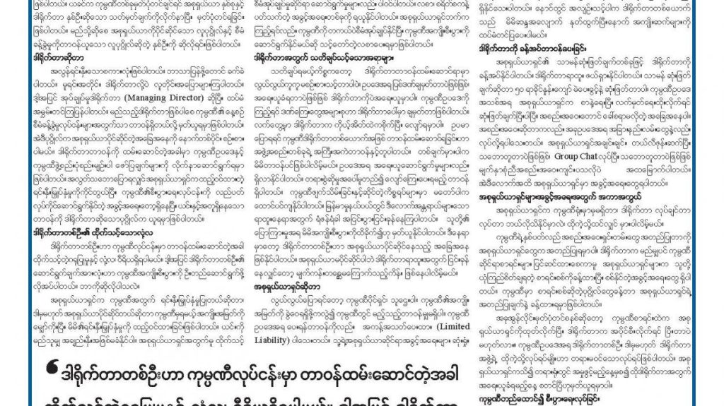 ဆောင်းပါးရှင် မောင်ဋီကာ ၏ အနည်းဆုံးရင်းနှီးမြှုပ်နှံသူများ (သို့မဟုတ်) အနည်းစု အစုရှယ်ယာရှင်များအား အကာအကွယ်ပေးခြင်း ဆောင်းပါး