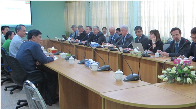 Ministry of Foreign Affairs and International Cooperation of Italy မှ Cultural and Economic Promotion, Innovation ဆိုင်ရာ ညွှန်ကြားရေးမှူးချုပ် Mr. Vincenzo de Luca ဦးဆောင်သည့် Business Delegation အဖွဲ့သည် ရင်းနှီးမြှုပ်နှံမှုနှင့် ကုမ္ပဏီများ ညွှန်ကြားမှု ဦးစီးဌာန၊ အမှတ်(၁)၊ သစ္စာလမ်း၊ ရန်ကင်းမြို့နယ်၊ ရန်ကုန်မြို့၌ (၇-၄-၂၀၁၆) ရက်နေ့ ၁၁:၃၀ နာရီတွင် လာရောက်၍ ရင်းနှီးမြှုပ်နှံမှု ဆိုင်ရာကိစ္စများနှင့် စပ်လျဉ်း၍ ဆွေးနွေးခဲ့ ကြပါသည်။