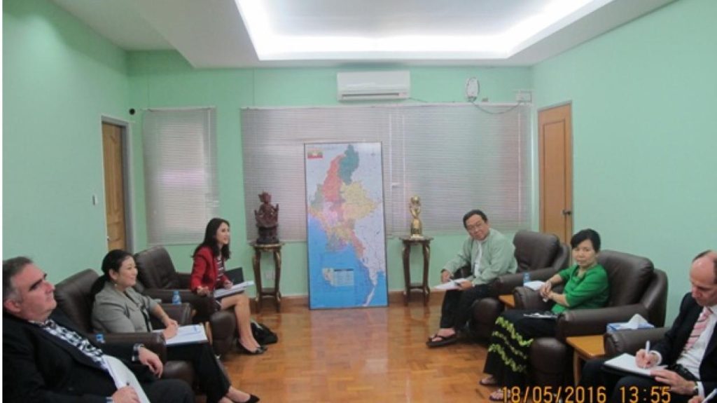 Asian Development Bank မှ Advisor ဖြစ်သူ Ms. Atsuko Hirose ဦးဆောင်သော ကိုယ်စားလှယ်အဖွဲ့သည် ရင်းနှီးမြှုပ်နှံမှုနှင့် ကုမ္ပဏီများညွှန်ကြားမှုဦးစီးဌာန၊ ဒုတိယညွှန်ကြား ရေးမှူးချုပ်အား အမှတ်(၁)၊ သစ္စာလမ်း၊ ရန်ကင်းမြို့နယ်၊ ရန်ကုန်မြို့၌ (၁၈-၅-၂၀၁၆) ရက်နေ့၊ နေ့လည် (၁၄:၀၀) နာရီတွင် လာရောက်တွေ့ဆုံပြီး နည်းပညာပိုင်းဆိုင်ရာ ကူညီထောက်ပံ့ ပေးနိုင်မည့် ကိစ္စရပ်များနှင့် စပ်လျဉ်း၍ ဆွေးနွေးခဲ့ပါသည်။