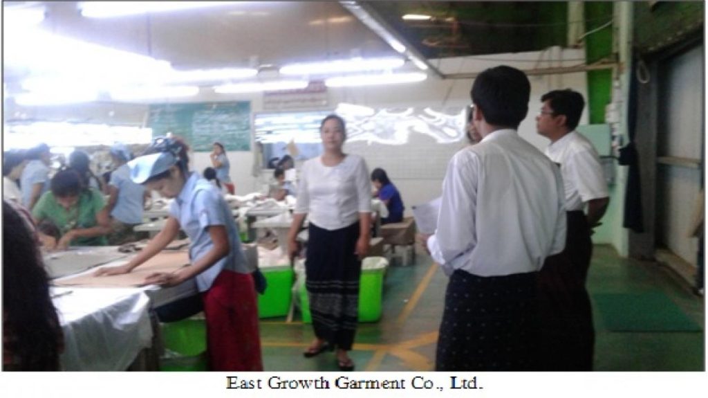 မြန်မာနိုင်ငံရင်းနှီးမြှုပ်နှံမှုကော်မရှင်၏ ခွင့်ပြုမိန့်ဖြင့်ဆောင်ရွက်လျက်ရှိသော လှိုင်သာယာစက်မှုဇုန်၊ လှိုင်သာသာမြို့နယ်၊ ရန်ကုန်တိုင်းဒေသကြီးရှိ “East Growth Garment Co., Ltd.” “FTE Corporation (Myanmar) Co., Ltd.” နှင့် “Hallmark Manufacturing Co., Ltd.” တို့သို့ ရင်းနှီးမြှုပ်နှံမှုနှင့် ကုမ္ပဏီများညွှန်ကြားမှုဦးစီးဌာန၊ အလုပ်သမားညွှန်ကြားမှုဦးစီးဌာန၊ ပတ်ဝန်းကျင် ထိန်းသိမ်းရေး ဦးစီးဌာနနှင့် စက်မှုကြီးကြပ်ရေးနှင့်စစ်ဆေးရေးဦးစီးဌာနတို့မှ တာဝန်ရှိပုဂ္ဂိုလ် များပါဝင်သည့် ကွင်းဆင်းစစ်ဆေးရေးအဖွဲ့သည့် ၂၀၁၆ ခုနှစ်၊ မေလ ၁၃ ရက်နေ့တွင် သွားရောက် စစ်ဆေးပြီး လိုအပ်သည်များကို ပေါင်းစပ်ညှိနှိုင်း ဆောင်ရွက်ပေးခဲ့ပါသည်။