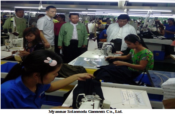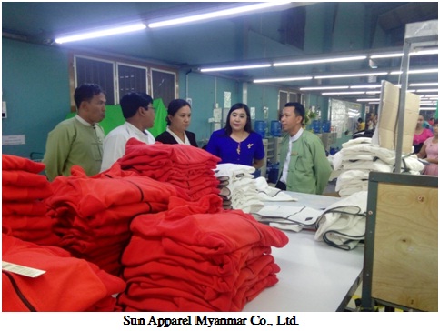 မြန်မာနိုင်ငံရင်းနှီးမြှုပ်နှံမှုကော်မရှင်၏ ခွင့်ပြုမိန့်ဖြင့် ဆောင်ရွက်လျက်ရှိသော လှိုင်သာယာ မြို့နယ်၊ ရန်ကုန်တိုင်းဒေသကြီးရှိ Nexstar Garment Manufacturing Co., Ltd., Myanmar Solarmoda Garments Co., Ltd. နှင့် Sun Apparel Myanmar Co., Ltd.တို့သို့ ရင်းနှီး မြှုပ်နှံမှုနှင့်ကုမ္ပဏီများ ညွှန်ကြားမှုဦးစီးဌာန၊ အလုပ်သမားညွှန်ကြားမှုဦးစီးဌာန၊ ပတ်ဝန်းကျင် ထိန်းသိမ်းရေးဦးစီးဌာန နှင့် စက်မှုကြီးကြပ်ရေးနှင့် စစ်ဆေးရေးဦးစီးဌာန တို့မှ တာဝန်ရှိပုဂ္ဂိုလ် များပါဝင်သည့် ကွင်းဆင်းစစ်ဆေးရေးအဖွဲ့သည် ၂၀၁၆ ခုနှစ်၊ ဇူလိုင်လ ၁၄ ရက်နေ့တွင် သွားရောက်စစ်ဆေးပြီး လိုအပ်သည်များကို ပေါင်းစပ်ညှိနှိုင်း ဆောင်ရွက်ပေးခဲ့ပါသည်။