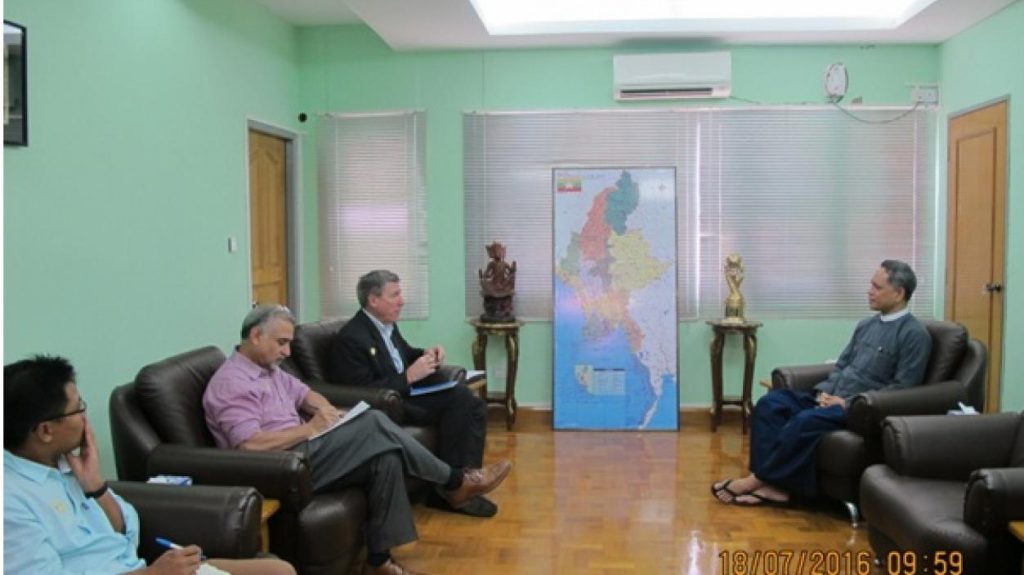 Asian Development Bank မှ Principal Country Specialist ဖြစ်သူ Mr. Peter J. Brimble ဦးဆောင်သောကိုယ်စားလှယ်အဖွဲ့သည် ညွှန်ကြားရေးမှူးချုပ်အား ရင်းနှီးမြှုပ်နှံမှုနှင့်ကုမ္ပဏီများ ညွှန်ကြားမှုဦးစီးဌာန ရုံးတည်ရှိရာ ရန်ကုန်မြို့၌(၁၈-၇-၂၀၁၆) ရက်နေ့၊နံနက်ပိုင်းတွင် လာရောက်တွေ့ဆုံပြီး ပုဂ္ဂလိကကဏ္ဍဖွံ့ဖြိုး တိုးတက်ရေးမူဘောင်နှင့် ရင်းနှီးမြှုပ်နှံမှုဆိုင်ရာကိစ္စရပ်များနှင့် စပ်လျဉ်း၍ ဆွေးနွေးခဲ့ပါသည်။