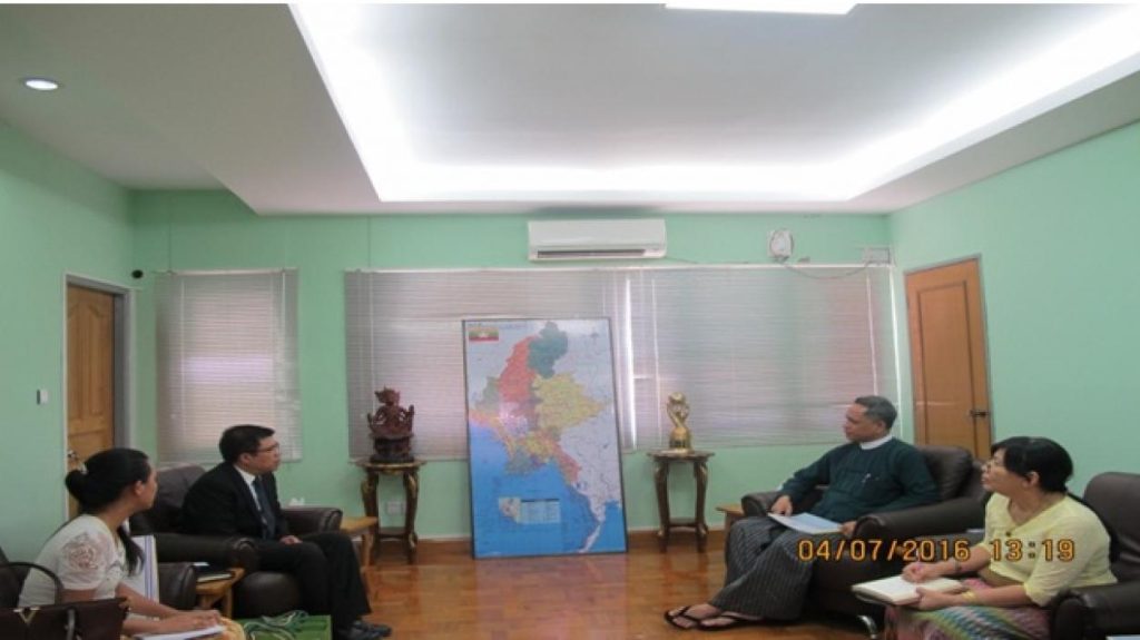 YOFC – Yadanarbon Fibre Co., Ltd. မှ Mr. Wang Rui, Chief Executive Officer ဦးဆောင်သော ကိုယ်စားလှယ်အဖွဲ့သည် ရင်းနှီးမြှုပ်နှံမှုနှင့်ကုမ္ပဏီများ ညွှန်ကြားမှုဦးစီးဌာန၊ အမှတ် (၁)၊ သစ္စာလမ်း၊ ရန်ကင်းမြို့နယ်၊ ရန်ကုန်မြို့၌ (၄-၇-၂၀၁၆) ရက်နေ့ နေ့လည်(၁၃: ၀၀) နာရီတွင် လာရောက်၍ ယင်းတို့၏ကုမ္ပဏီဆိုင်ရာကိစ္စများနှင့် စပ်လျဉ်း၍ ဆွေးနွေးခဲ့ကြပါသည်။