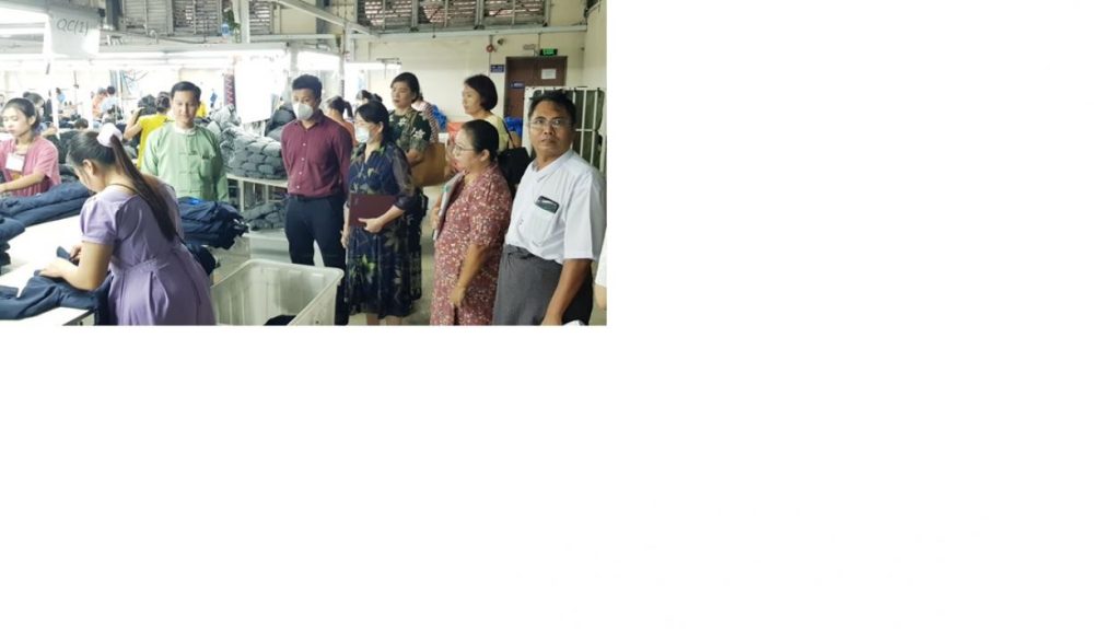 ရန်ကုန်တိုင်းဒေသကြီး ရင်းနှီးမြှုပ်နှံမှုလုပ်ငန်းများ ကြီးကြပ်ရေးအဖွဲ့သည် ရွှေပြည်သာ မြို့နယ်ရှိ CMP စနစ်ဖြင့် အဝတ်အထည်အမျိုးမျိုးချုပ်လုပ်ခြင်း လုပ်ငန်းဆောင်ရွက်လျက်ရှိ သောစက်ရုံများနှင့် ထန်းတပင်မြို့နယ်ရှိ ဂျပ်ဖာထုတ်လုပ်၍ ၁၀၀ ရာခိုင်နှုန်း ပြည်တွင်း ရောင်းချခြင်းလုပ်ငန်း ဆောင်ရွက်မည့် စက်ရုံသို့ ၂၀၂၃ ခုနှစ် စက်တင်ဘာလ ၁၄ ရက်နေ့တွင် သွားရောက် ၍ လုပ်ငန်းဆောင်ရွက်နေမှု အခြေအနေများ၊ မီးဘေးအန္တရာယ် ကာကွယ်ရေးနှင့် မီးအာမခံထားရှိမှု အခြေအနေများ၊ တွေ့ကြုံရသည့် အခက်အခဲများနှင့်စပ်လျဉ်း၍ လိုအပ်သည်များကို ပေါင်းစပ်ညှိနှိုင်းဆောင်ရွက်ပေးခဲ့ပါသည်။