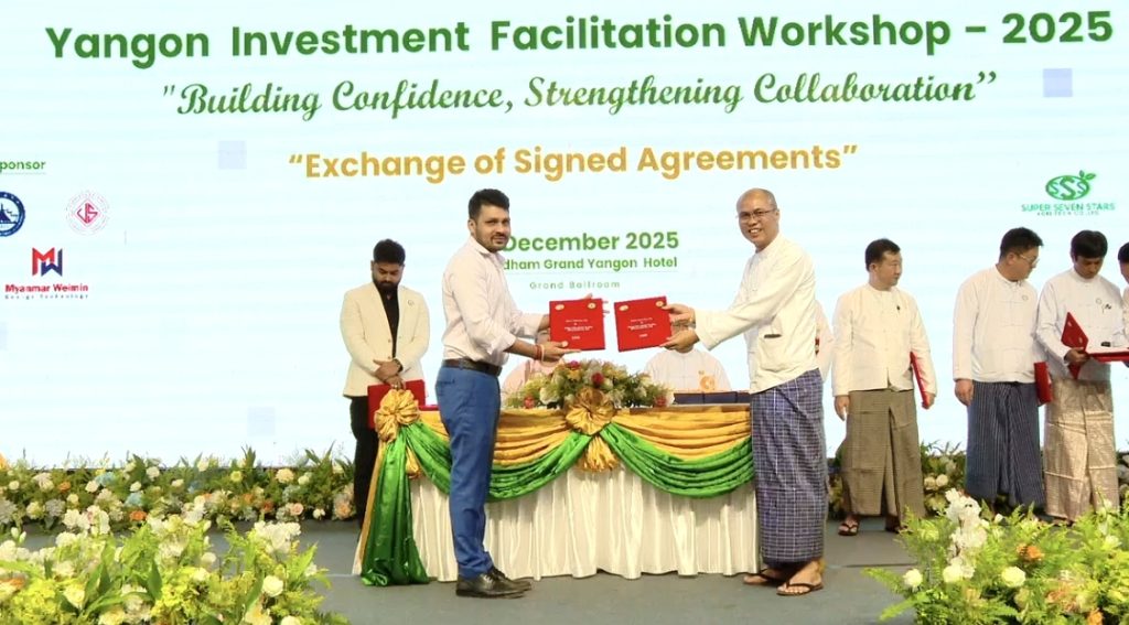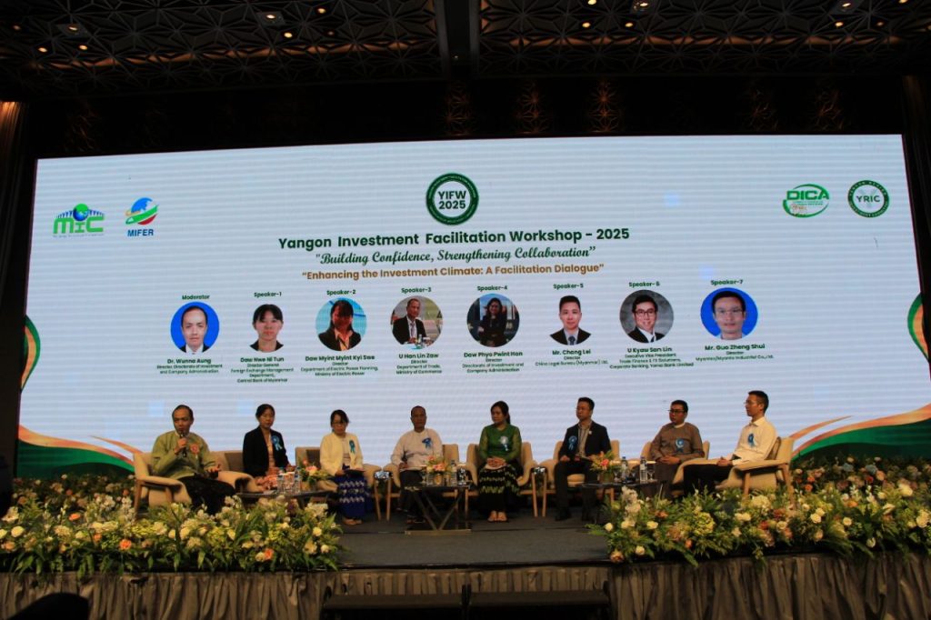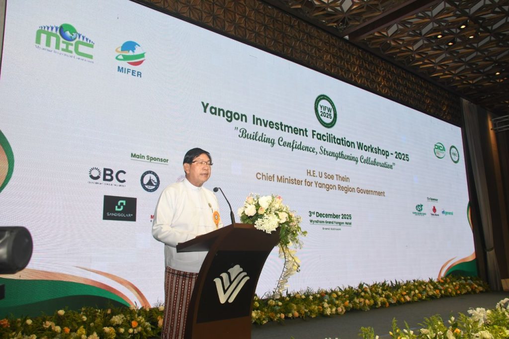 ရင်းနှီးမြှုပ်နှံမှုနှင့်နိုင်ငံခြားစီးပွားဆက်သွယ်ရေးဝန်ကြီးဌာနနှင့် ရန်ကုန်တိုင်းဒေသကြီး အစိုးရ အဖွဲ့တို့၏ ဦးဆောင်ကြီးကြပ်မှုဖြင့် ရန်ကုန်တိုင်းဒေသကြီး ရင်းနှီးမြှုပ်နှံမှုကော်မတီ၏ ရင်းနှီးမြှုပ်နှံမှု လွယ်ကူ ချောမွေ့စေရေးဆွေးနွေးပွဲ-၂၀၂၅ (Yangon Investment Facilitation Workshop-2025) ကို ယနေ့ နံနက်ပိုင်းတွင် ရန်ကုန်မြို့ရှိ Wyndham Grand Yangon Hotel ၌ ကျင်းပသည်။