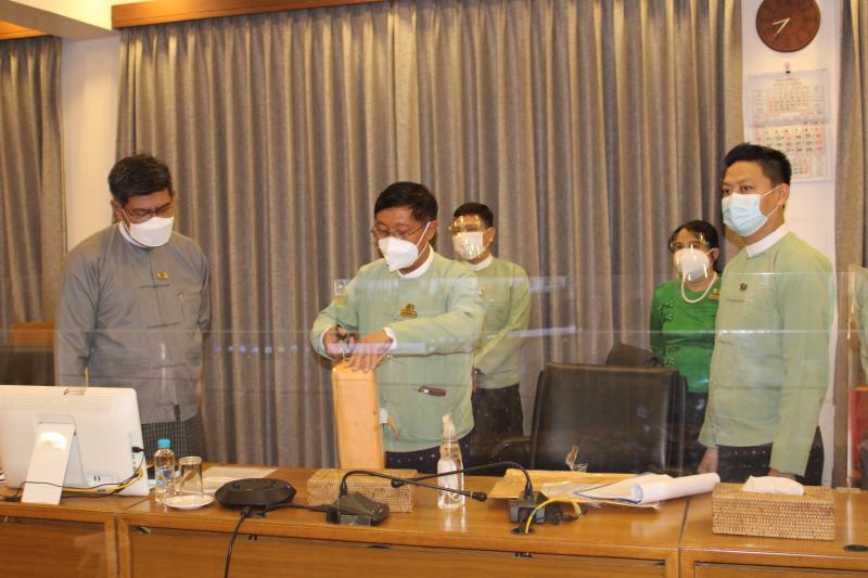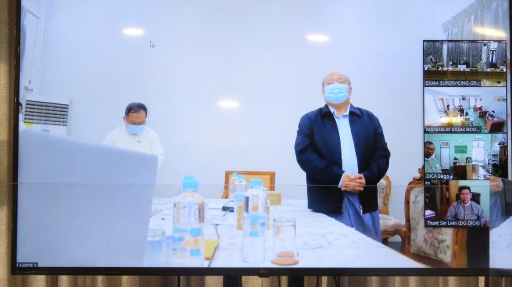 စာမေးပွဲဖြေဆိုသူ ဝန်ထမ်းများအား ပြည်ထောင်စုဝန်ကြီး ဦးသောင်းထွန်းက Video Conferencing မှတစ်ဆင့် ကြည့်ရှုအားပေးခဲ့ပြီး ရင်းနှီးမြှုပ်နှံမှုနှင့် ကုမ္ပဏီများညွှန်ကြားမှု ဦးစီးဌာန၏ ညွှန်ကြားရေးမှူးချုပ်က ဦးဆောင်၍ Covid-19 ရောဂါကာကွယ်ရေး စည်းကမ်း ချက်များ နှင့် အညီ စာမေးပွဲကို စနစ်တကျ ကြီးကြပ်ခဲ့ကြပါသည်။