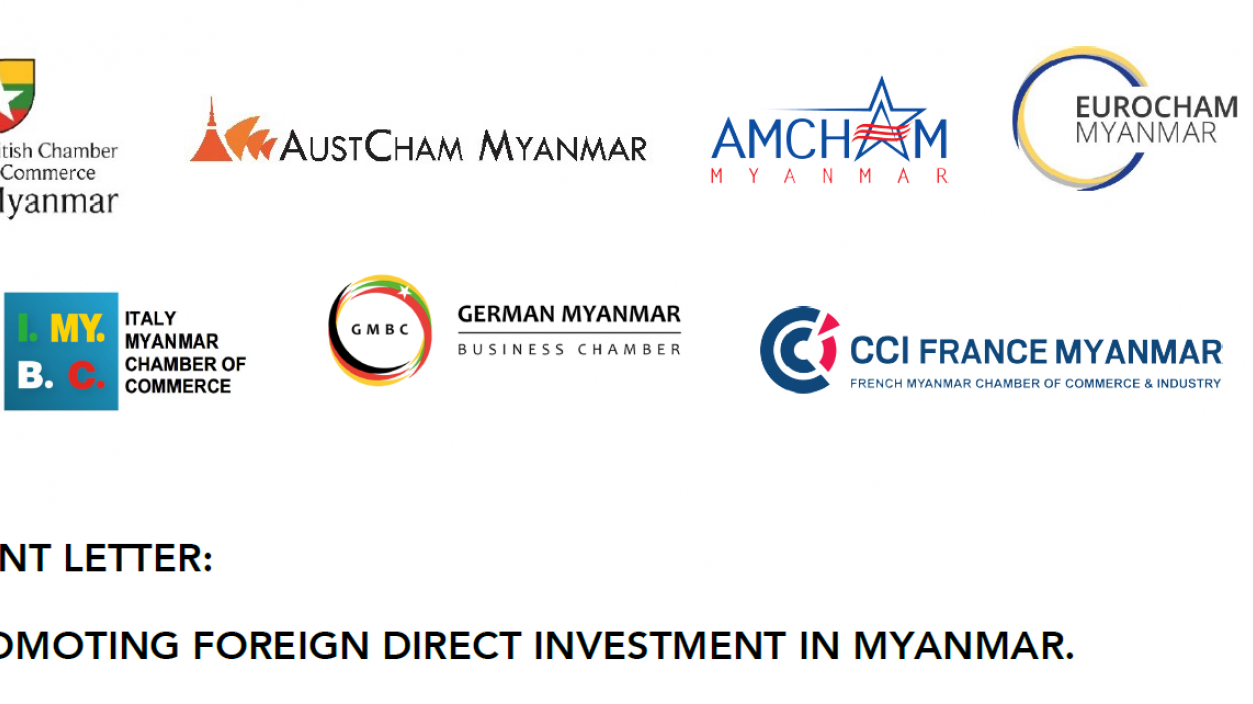 The foreign business associations in Myanmar which are the British Chamber of Commerce, Australian Chamber of Commerce, American Chamber of Commerce, EuroCham Myanmar, Italy Myanmar Chamber of Commerce, German Myanmar Business Chamber, French Myanmar Chamber of Commerce and Industry announced a joint letter for promoting foreign direct investment in Myanmar.